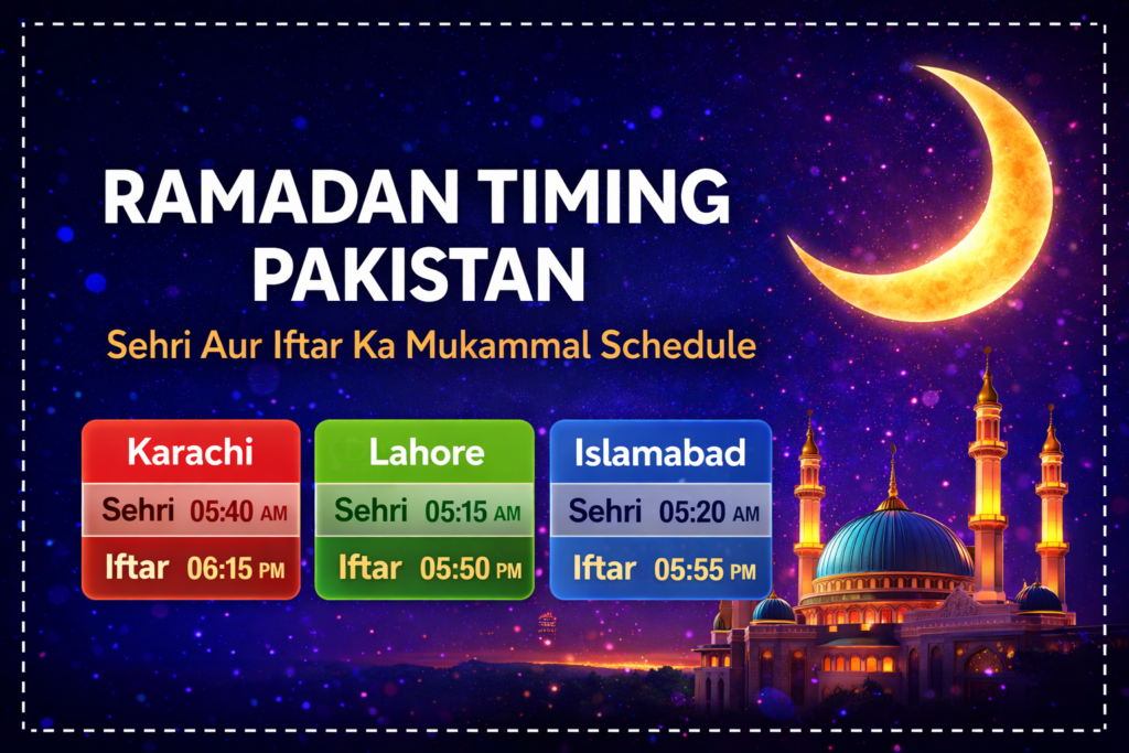 Ramadan Timing – Pakistan Kay Liye Complete Sehri & Iftar Schedule (2026) Ramadan ul Mubarak Islam ka sab se muqaddas aur barkat wala mahina hai. Is mahine mein musalman subah se le kar maghrib tak roza rakhte hain aur Allah ke qareeb honay ki koshish karte hain. Roza rakhna sahi waqt ka ilm hona bohat […]
